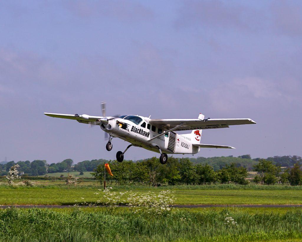 Once ready, you’ll walk out to our very expensive taxi – the Blackhawk, a turbine aircraft that gets you to 15,000 feet in around 12 minutes.